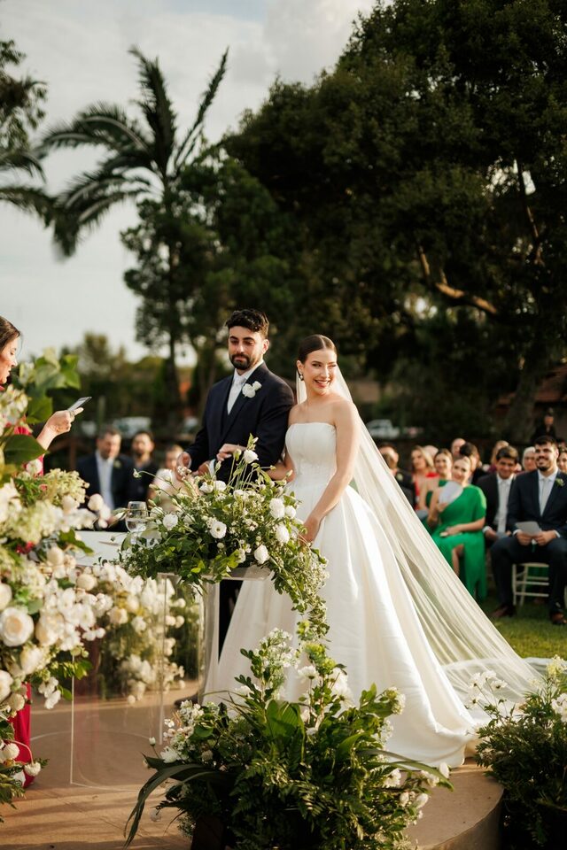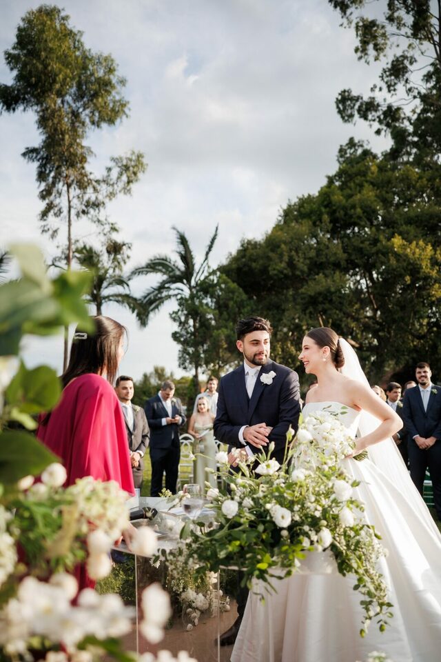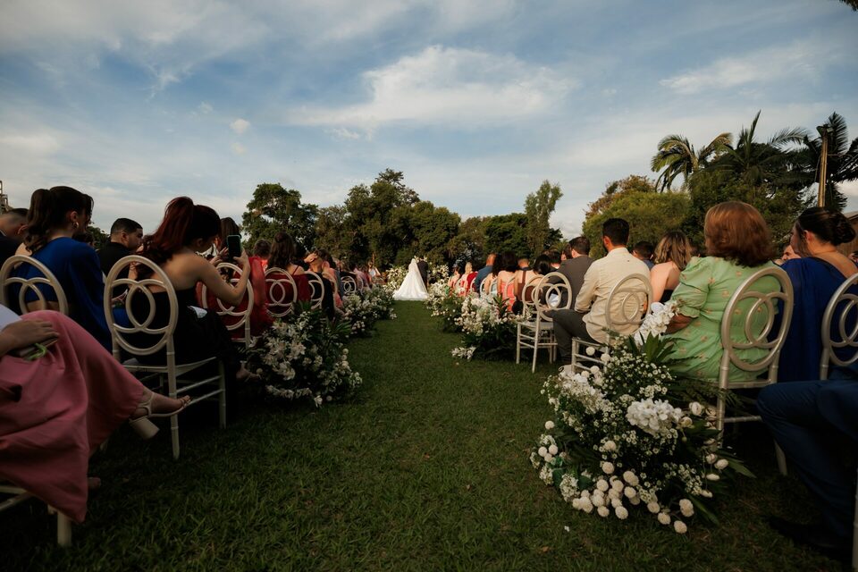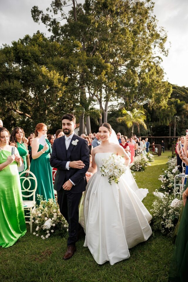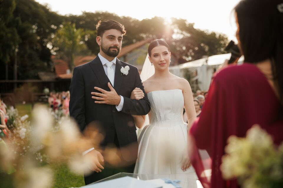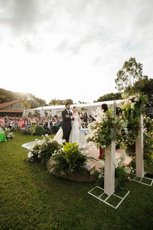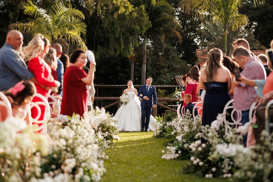 O casamento de Alana e Rodolfo foi um verdadeiro sonho ao ar livre. Sob um céu claro, rodeados por tons de verde e branco, os noivos disseram “sim” em uma cerimônia clássica, sofisticada e repleta de emoção.