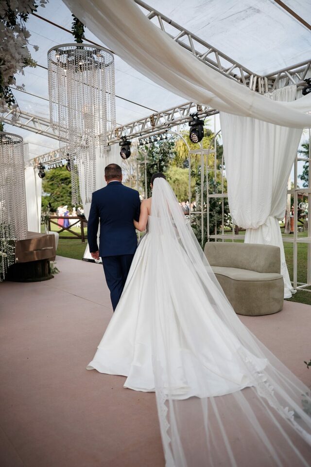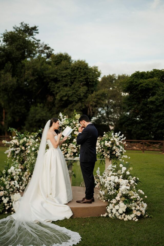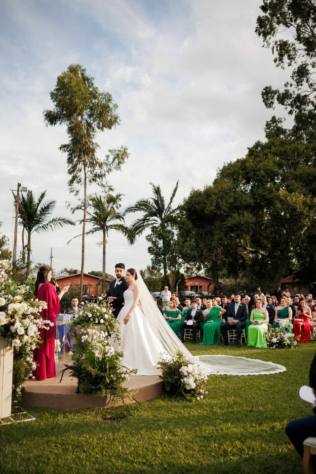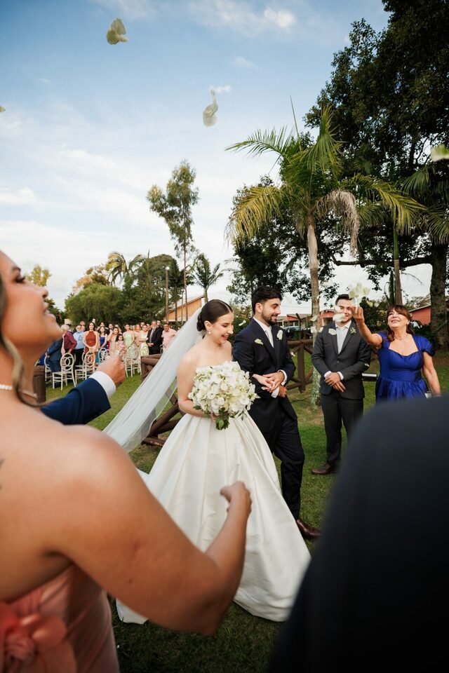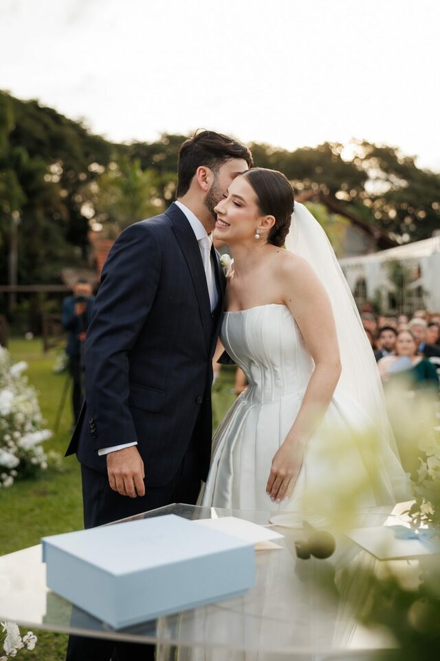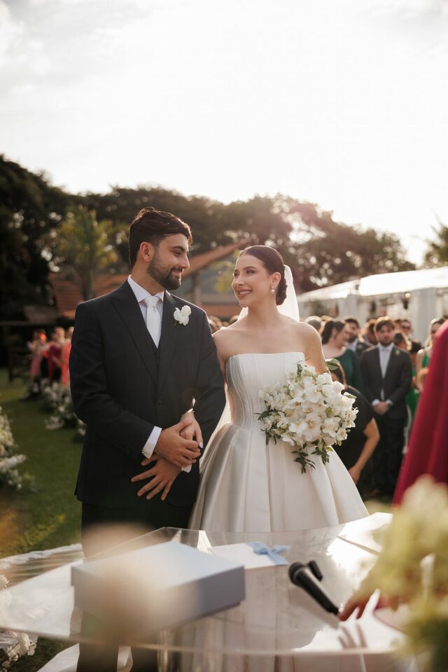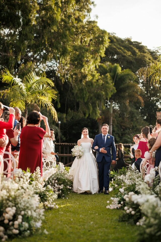 O casamento de Alana e Rodolfo foi um verdadeiro sonho ao ar livre. Sob um céu claro, rodeados por tons de verde e branco, os noivos disseram “sim” em uma cerimônia clássica, sofisticada e repleta de emoção.