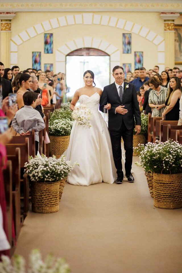 No coração de Campo Mourão, sob o majestoso teto da Catedral São José, Loraine e Maikon celebraram o início de uma nova jornada juntos. O amor entre os dois era evidente a cada troca de olhares e sorrisos que iluminaram o dia.