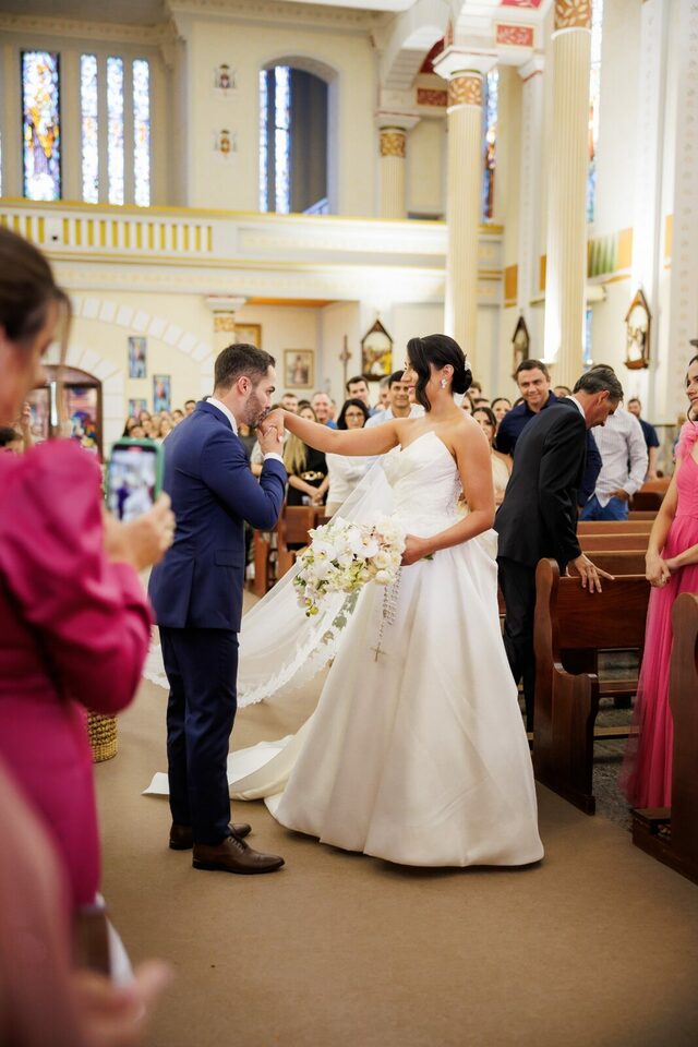 A cerimônia foi uma mistura perfeita de emoção e alegria, com a Catedral servindo de cenário ideal para o começo desta linda história. Amigos e familiares testemunharam o carinho e a cumplicidade dos noivos, tornando o momento ainda mais especial.